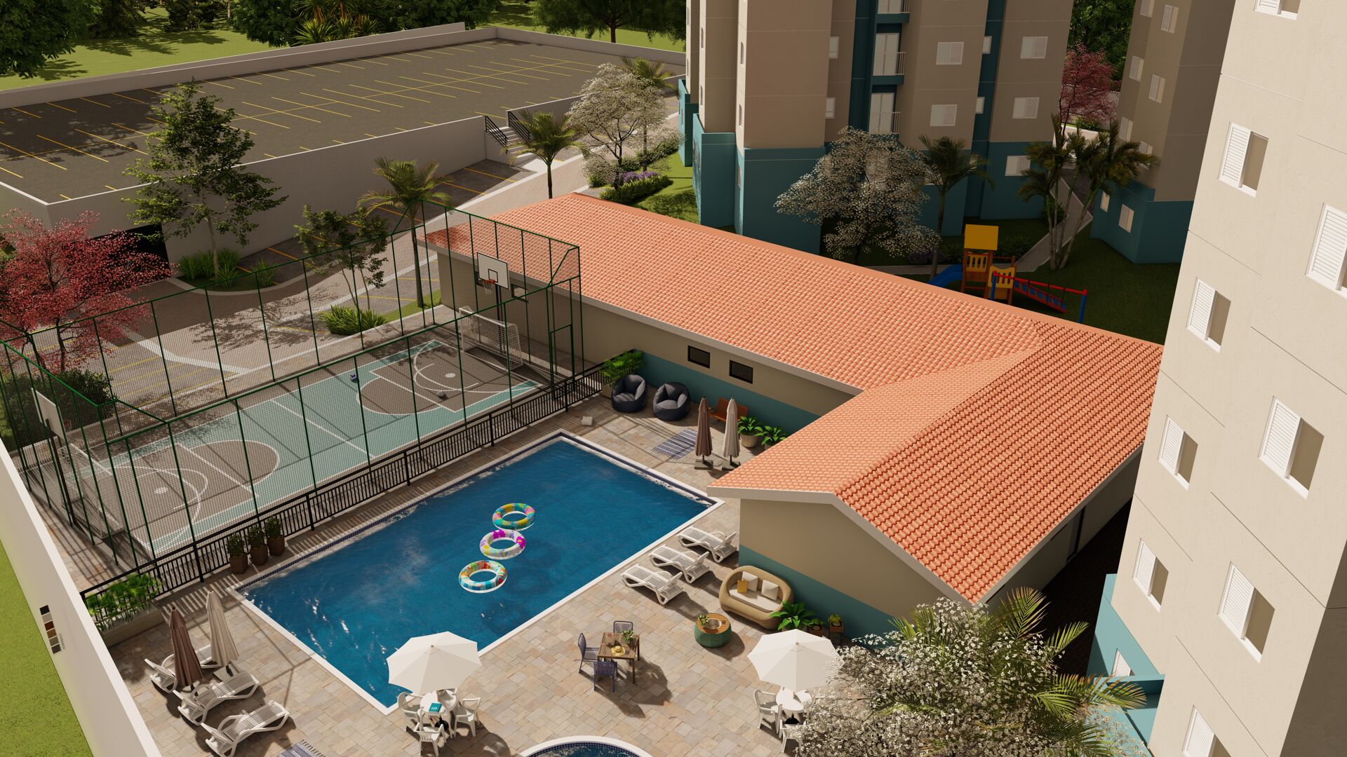 - Playground e salão de festas