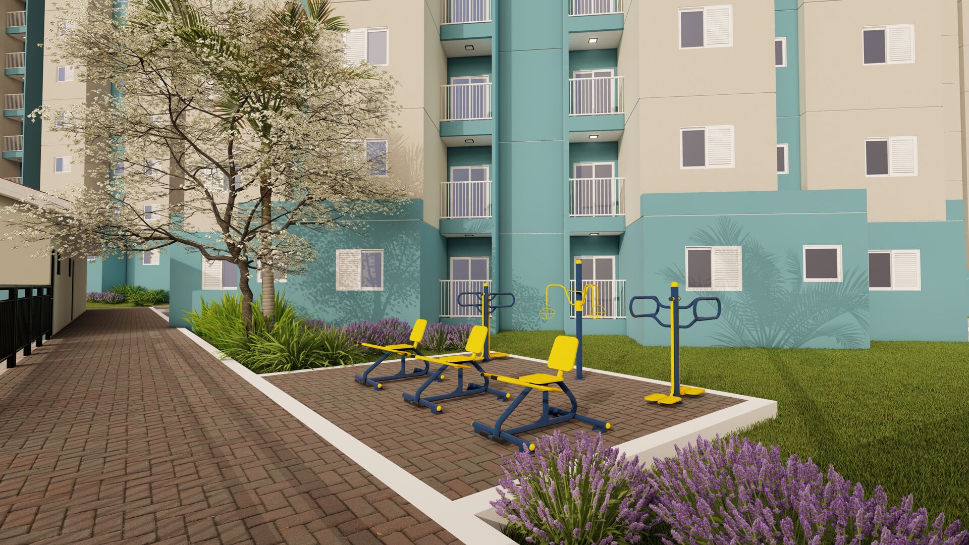 - Quiosques e áreas de convivência