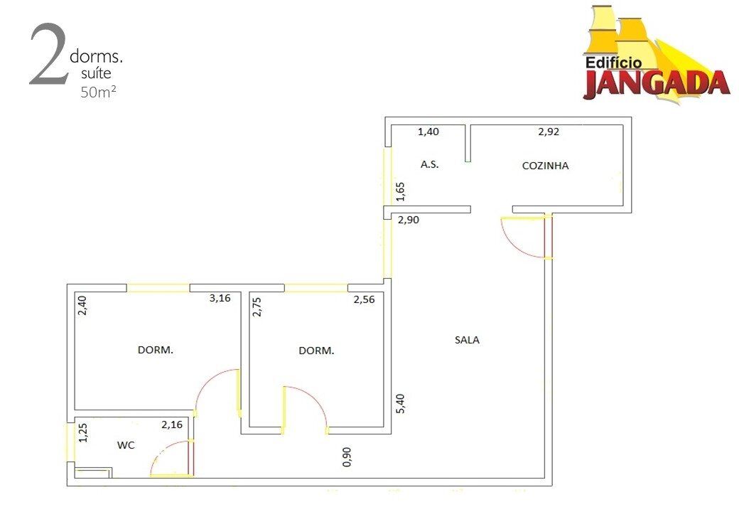 2 Dormitórios, sendo 1 suíte2 Banheiros1 Vaga1 Sala de TV1 Cozinha1 Área de serviço
